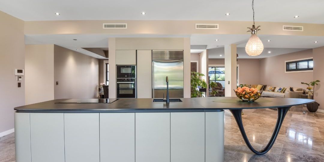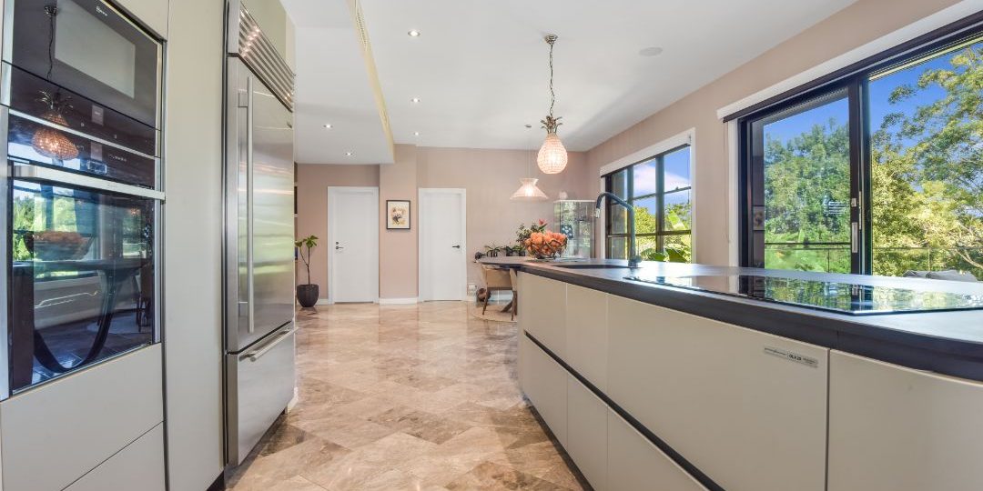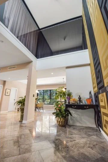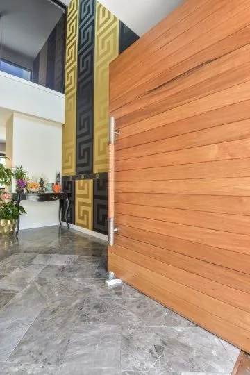 This unique residence features marble tile floors, Bazaar glass mosaics in bathrooms, an open solid timber staircase, custom built joinery, automated pool cover and a koi pond at the entrance to welcome the owners’ home.